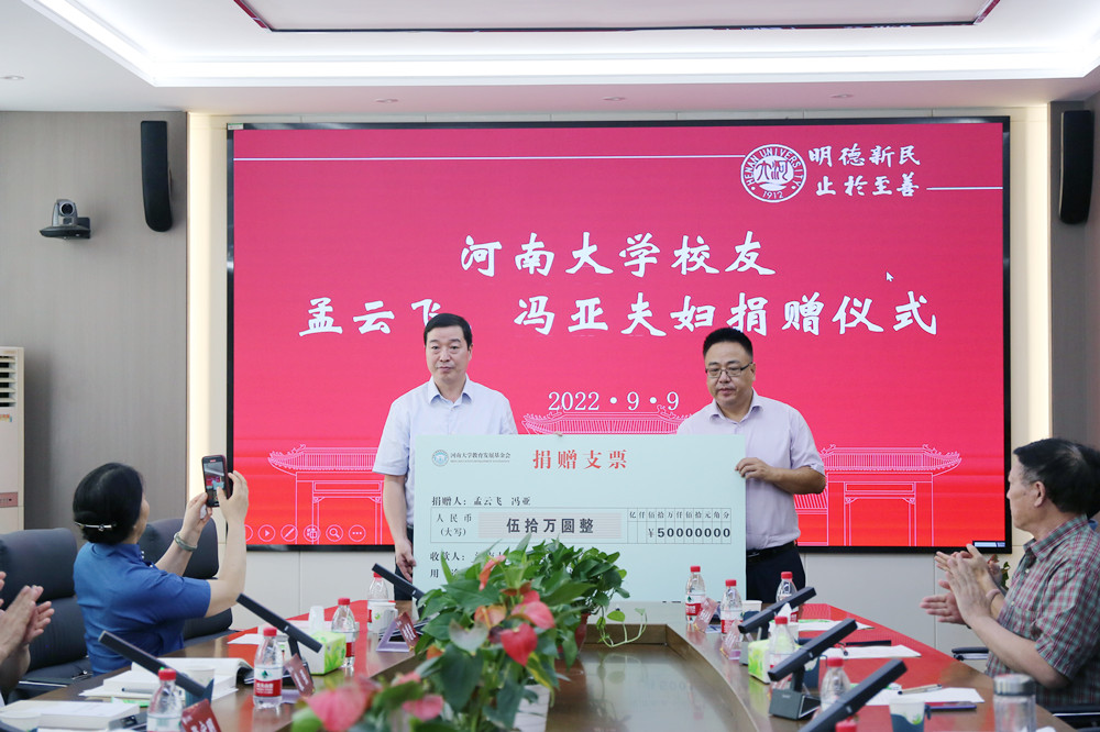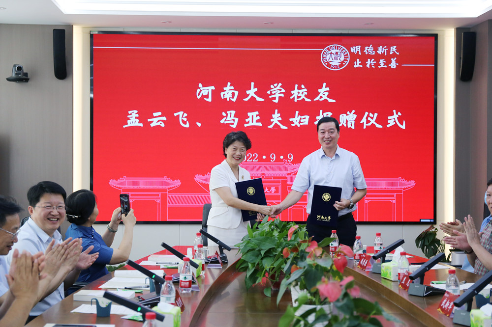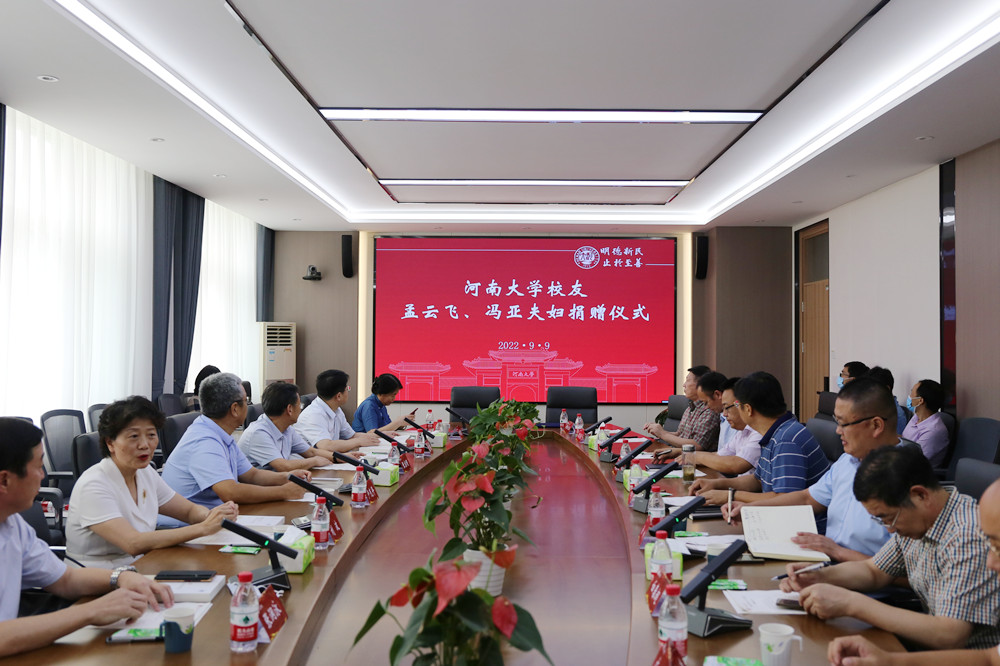 张宝明向孟云飞、冯亚夫妇表示感谢。他指出,今年既是米兰体育平台_米兰体育(中国建校110周年,又是第二轮“双一流”建设的开启之年,文学院的发展遇到了前所未有的良好机遇。学院的发展离不开广大校友和社会各界的鼎力支持,孟云飞、冯亚夫妇长期以来关注母校发展,多次进行捐赠,充分体现了河大学子对母校的挚爱,更体现出校友们的无私奉献和社会担当。他希望文学院妥善管理、运用这笔赠款,为学校“双一流”建设贡献智慧力量。