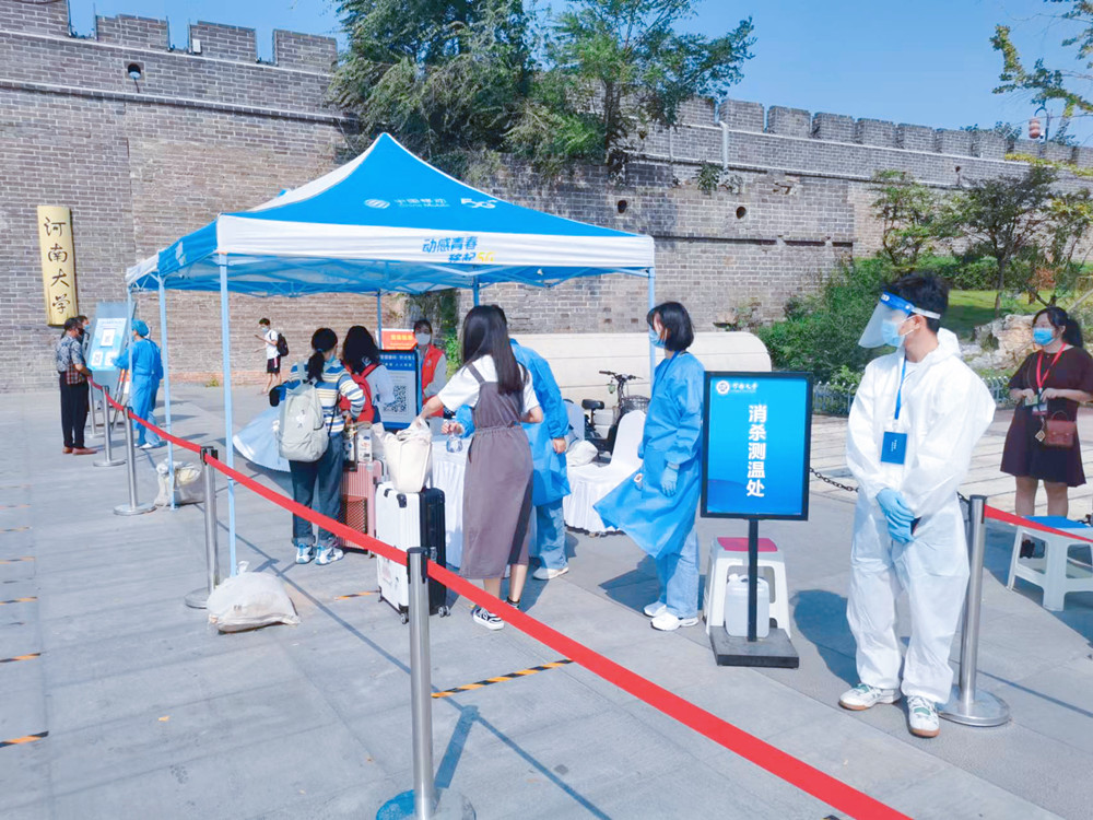 根据学校工作安排,结合当前疫情防控形势,9月14日我校开封校区、郑州龙子湖校区高年级备考本科生、研究生返校报到。期间,校领导张宝明、冯淑霞及党委学生工作部、研究生工作部、总务处(后勤集团总公司)、保卫处、信息化管理办公室、校团委、校医院等相关职能部门负责人多次到学生返校报到点检查指导工作,看望返校学生,慰问现场工作人员。