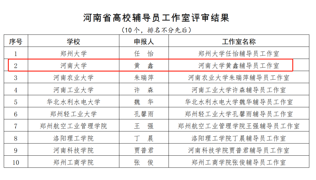 近日,河南省委教育工委、河南省教育厅公布《关于河南省高校辅导员工作室评审结果的公示》,我校党委学生工作部组织申报的“米兰体育平台_米兰体育(中国黄鑫辅导员工作室”榜上有名。此次评选活动自今年7月启动,经各高校申报、资格审查、专家评审、综合评议等环节,评选出10个河南省高校辅导员工作室。
