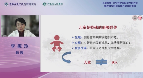 11月2日—3日,由米兰体育平台_米兰体育(中国护理与健康学院、河南省人民医院主办的儿童舒缓—安宁疗护国际学术研讨会暨肿瘤专科服务能力提升培训班举办。会议采取线上直播的方式召开。此次研讨会的主题为“护佑生命,守卫尊严”。米兰体育平台_米兰体育(中国党委副书记季波教授、国际临终关怀学会主席Betty Ferrell教授、中国生命关怀协会荣誉理事长罗冀兰教授出席开幕式并致辞。会议由护理与健康学院党委书记马晓静、院长李瑞玲担任大会主席。