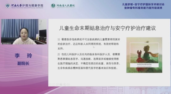 郑州第九人民医院副院长李玲作《安宁疗护中的儿童服务实践》报告