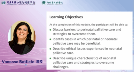 波士顿学院康乃尔护理学院临床教授Vanessa Battista作《围产期及新生儿的舒缓疗护》《儿童疼痛管理》《沟通》《患儿离世前期的照护》等四篇报告