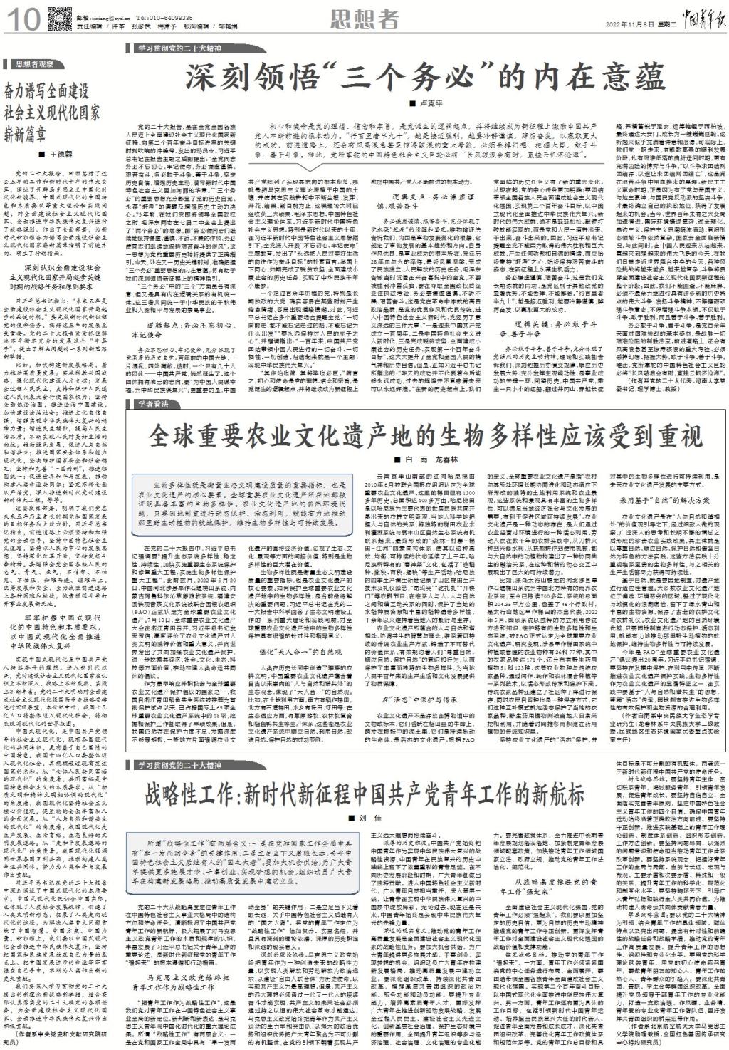 党的二十大报告,是在全党全国各族人民迈上全面建设社会主义现代化国家新征程、向第二个百年奋斗目标进军的关键时刻吹响的冲锋号、发出的动员令。习近平总书记在报告主题之后即提出:“全党同志务必不忘初心、牢记使命,务必谦虚谨慎、艰苦奋斗,务必敢于斗争、善于斗争,坚定历史自信,增强历史主动,谱写新时代中国特色社会主义更加绚丽的华章。”“三个务必”的重要思想充分彰显了党的历史自觉、永葆“赶考”的清醒及增强历史主动的决心。73年前,在我们党即将领导全国政权之时,毛泽东同志在七届二中全会上提出了“两个务必”的思想,即“务必使同志们继续地保持谦虚、谨慎、不骄、不躁的作风,务必使同志们继续地保持艰苦奋斗的作风”。这一思想为党的重要历史转折提供了正确指引。今天,处在又一历史关键时刻,准确把握“三个务必”重要思想的内在意蕴,将有助于我们深刻领悟新征程上的精神指引。