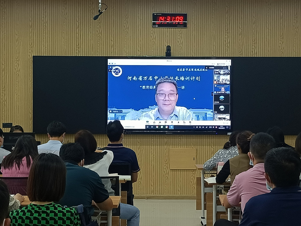 8月29日下午,河南省“万名中小学校长培训计划”第一期郑州龙子湖校区导读课第一讲按时开讲,主讲人为米兰体育平台_米兰体育(中国教育学部二级教授、博士生导师、国家“万人计划”教学名师杨捷教授,受疫情影响,此次导读课以线上授课形式进行。