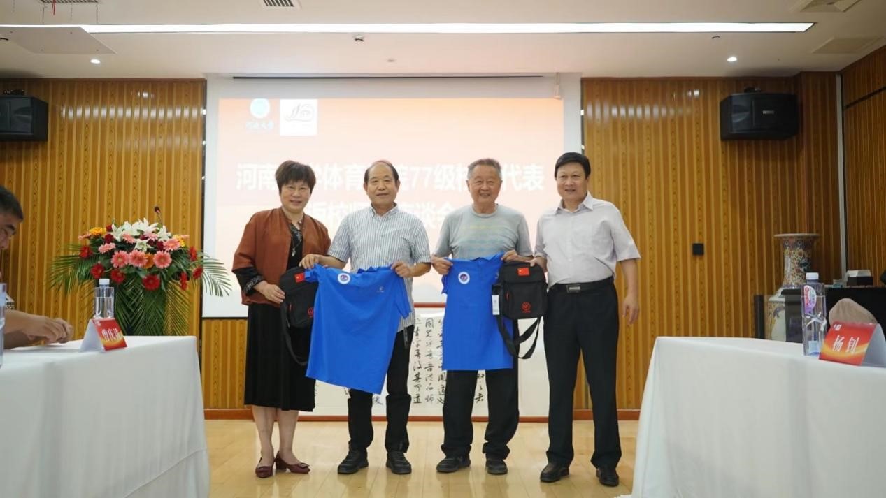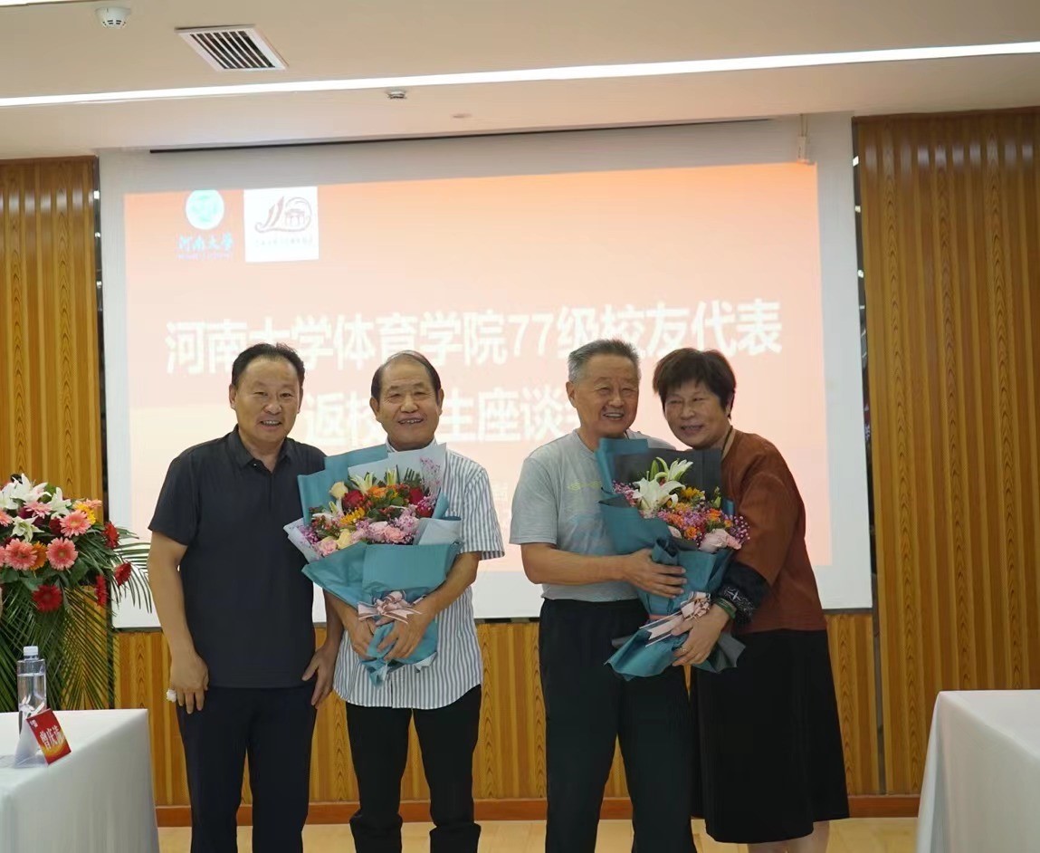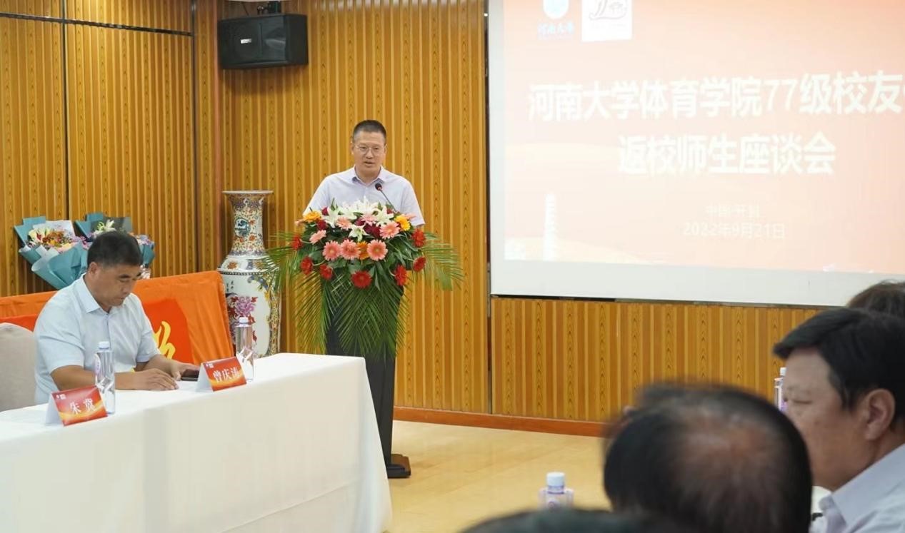 百十春秋,耕耘不辍育桃李芬芳;济济多士,薪火相传书河大华章。值米兰体育平台_米兰体育(中国110周年校庆来临之际,9月21日上午,体育学院举办了77级校友代表返校师生座谈会。体育学院老教师代表王崇喜、栗胜夫,77级校友代表郭蔚蔚、林克明、张跃敏、王小美、崔伟、丁英俊、杨钊,体育学院党政领导班子全体成员出席了座谈会。会议由体育学院副院长牛云杰主持。